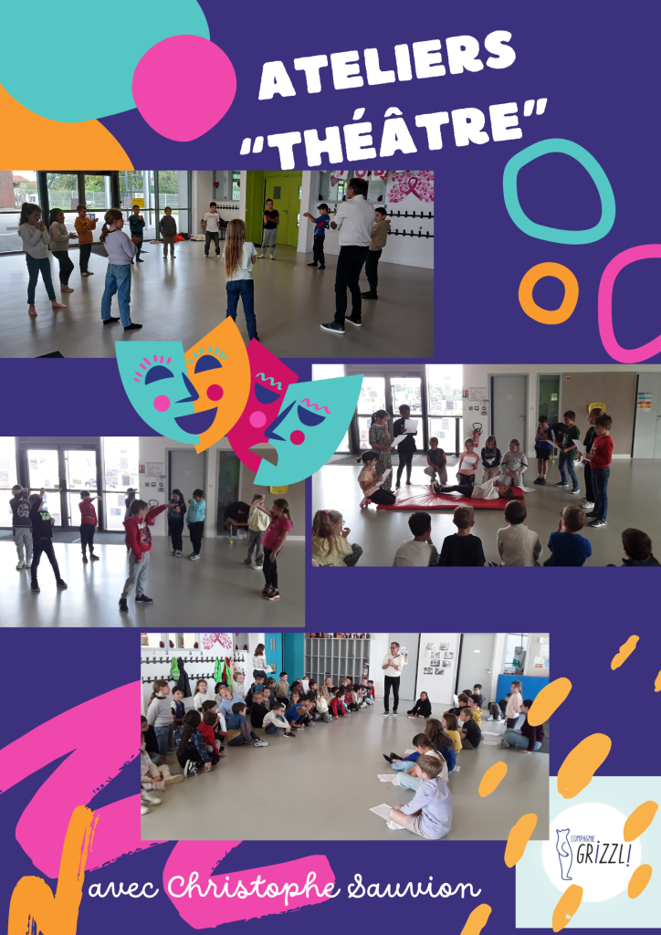 Dans le cadre du thème annuel de l’école « Apprendre à se connaitre pour mieux comprendre les autres », un partenariat a été mis en place avec la Compagnie Grizzli, compagnie professionnelle de théâtre. Des exercices ont ainsi été proposés aux élèves par Christophe SAUVION, metteur en scène, afin d’appréhender l’occupation de l’espace, l’entrée en contact par le regard et l’acceptation de celui de l’autre. Ces ateliers par petits groupes ont aussi permis de travailler l’écoute, la projection de la voix, la posture, ainsi que l’entraide au service d’une construction collective.
